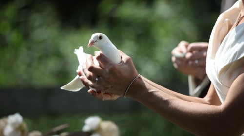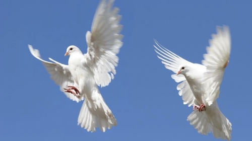Ein unvergesslicher Augenblick: die beiden ersten Tauben werden losgelassen- dann folgt der ganze Schwarm hinterher...